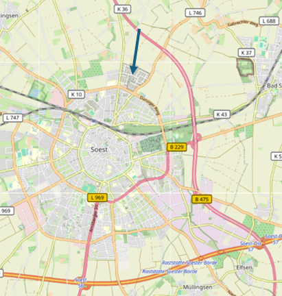 Der Zinngießerweg im Neubaugebiet „Neuer Soester Norden“ ist erreichbar über die „Oestinghauser Landstraße“ oder den „Weslarner Weg“: